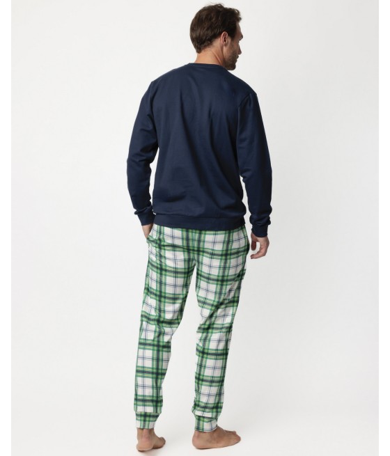 Pijama de punto de algodón, manga larga con cuello redondo y pantalón largo.